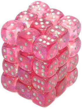 Pack of 36 count 12mm 6-sided d6 dice. Borealis Pink With Silver [CHX27804]