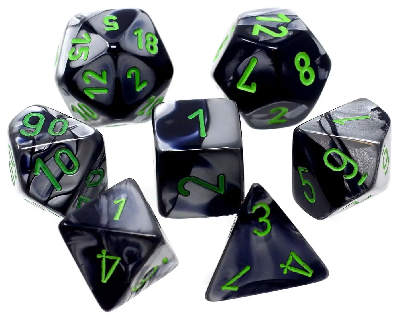 Signature dice are a compilation of the best selling colors of new dice released in the past few years. It includes a wide variety of colors and materials, but each is a unique and interesting addition to any dice collection. This set contains one d20, one d12, two d10 (00-90 and 0-9), one d8, one d6, and one d4.