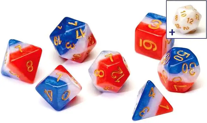 7 die set with a free D20 included. Comes in a tube