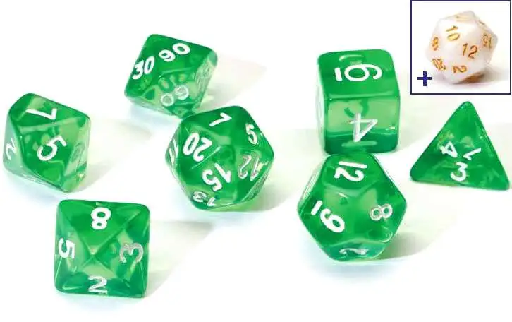 7 die set with a free D20 included. Comes in a tube