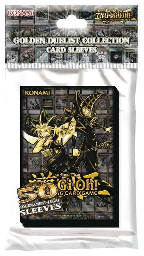 We have seen countless cards create tons of iconic moments across the history of the Yu-Gi-Oh! TCG.Whether it was classic ace monsters like Dark Magician, Blue-Eyes White Dragon, and Exodia theForbidden One, or tournament-level cards like Rescue Cat, El Shaddoll Construct, and Nekroz of Trishula, or even forbidden cards like Yata-Garasu, Substitoad, and Number 16: Shock Master, everyone has their own personal favorites that symbolize their favorite Yu-Gi-Oh! moments. With so much awesome Dueling action, its difficult to capture all of it in an accessory product until now! The Golden Duelist Collection accessories showcase loads of iconic cards across each item, and to top it all off, the King of Games, Yugi Muto along with his ace monster Dark Magician in gleaming gold!The Golden Duelist Collection Card Sleeves have a special glittering foil that is unique to the Golden Duelist Collection and matches the other accessories. Each pack contains 50 sleeves designed to meettournament regulation standards. Theres no better way to protect your cards during a Duel!