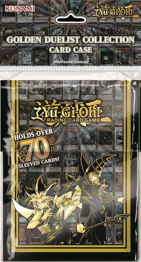 We have seen countless cards create tons of iconic moments across the history of the Yu-Gi-Oh! TCG.Whether it was classic ace monsters like Dark Magician, Blue-Eyes White Dragon, and Exodia theForbidden One, or tournament-level cards like Rescue Cat, El Shaddoll Construct, and Nekroz of Trishula, or even forbidden cards like Yata-Garasu, Substitoad, and Number 16: Shock Master, everyone has their own personal favorites that symbolize their favorite Yu-Gi-Oh! moments. With so much awesome Dueling action, its difficult to capture all of it in an accessory product until now! The Golden Duelist Collection accessories showcase loads of iconic cards across each item, and to top it all off, the King of Games, Yugi Muto along with his ace monster Dark Magician in gleaming gold!The Golden Duelist Collection Card Case has a special glittering foil that is unique to the Golden Duelist Collection and matches the other accessories. Each Card Case can fit a full Main, Side, and Extra Deck for a total of 70 sleeved cards. It also includes a special divider featuring the outside design as well as the same glittering foil. Theres no better way to protect your Deck while youre on the go!
